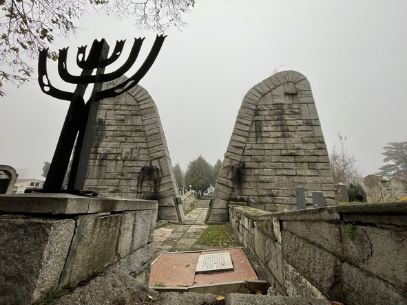 There are two Jewish graveyards close to the “New graveyard”. The bigger one is the Sephardic, the smaller one the Ashkenasic close to the New graveyard. The latter one is locked, the other one is open. On the picture we see the sculpture in honour of the victims of the shoah.